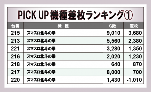 当日特に盛り上がりを見せていた機種に注目してみると、不動の人気機種『スマスロ北斗の拳』で打ちごたえのある状況が整っており、ファンが自信をもってレバーを叩いていた様子が目に浮かぶ。