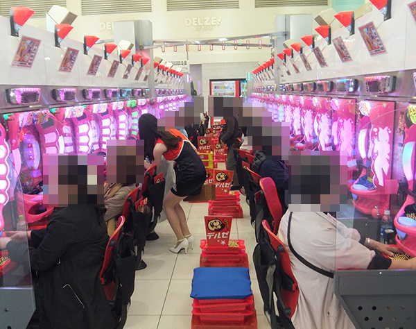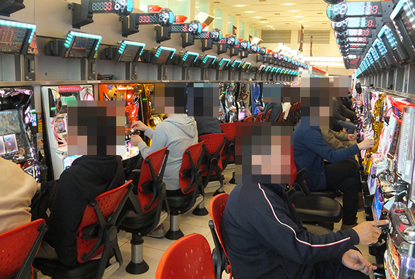 店内をのぞいてみると、パチンコとパチスロの各シマに楽しそうな光景が広がっていた。