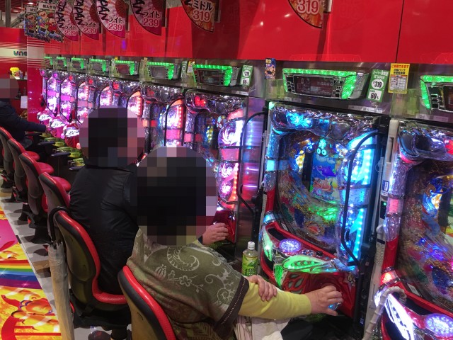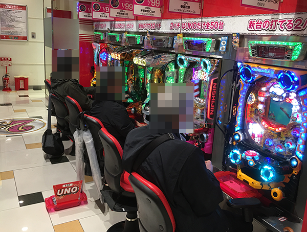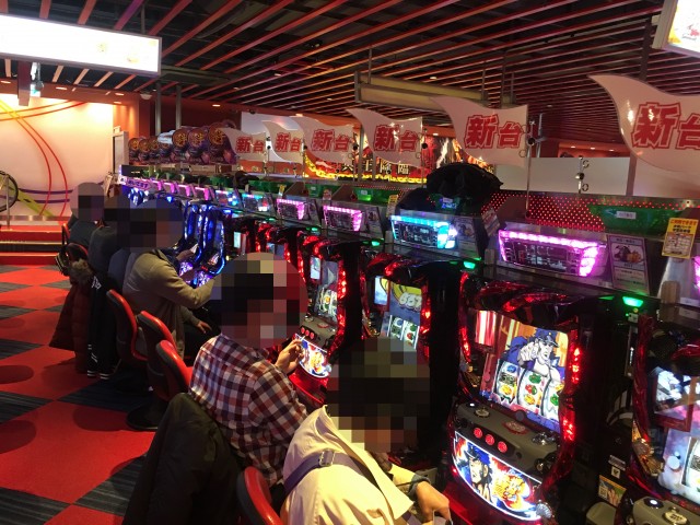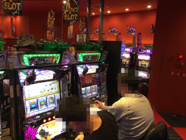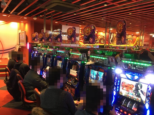 取材日の店内には、パチンコ・パチスロともに、さまざまな機種で遊技を楽しんでいるプレイヤーの姿があった。