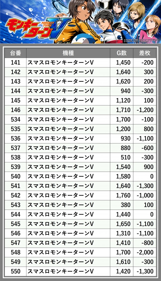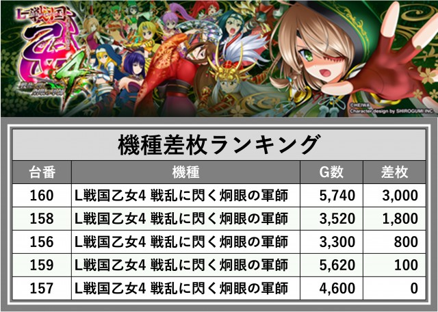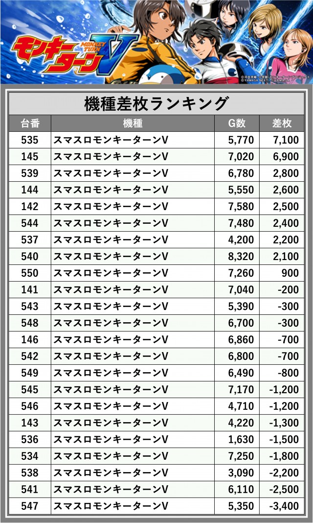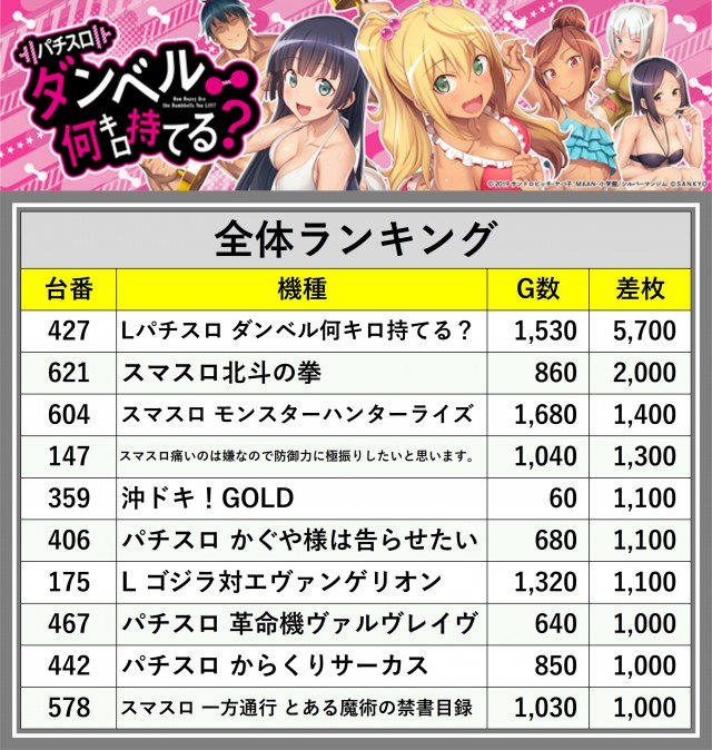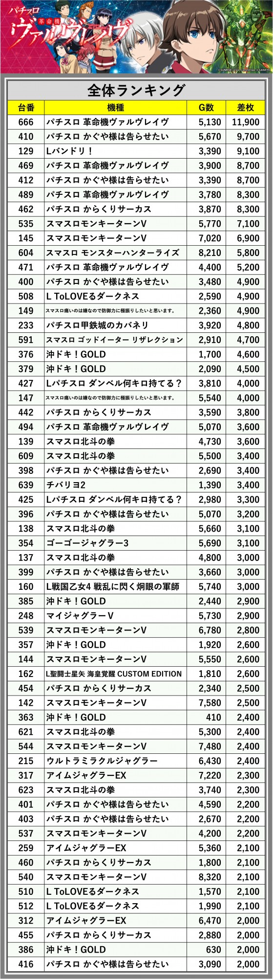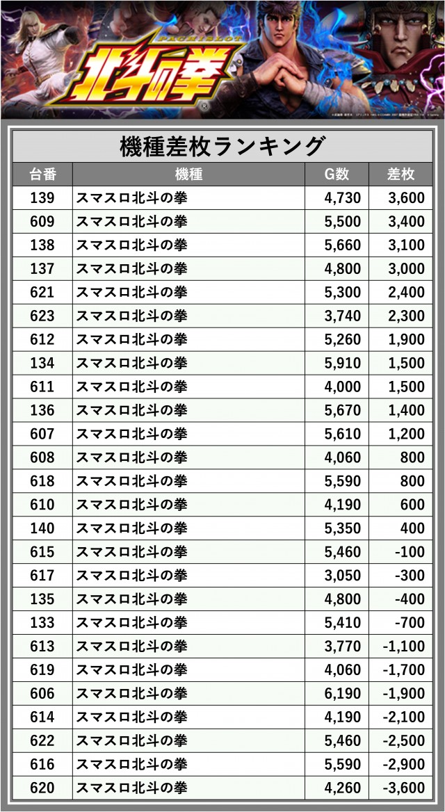※差枚数順に掲載しています