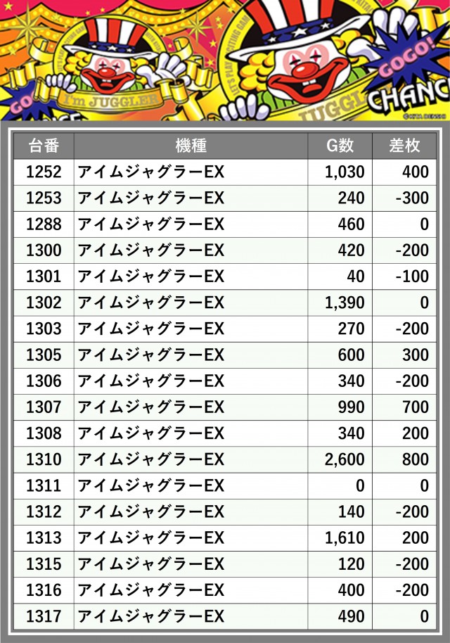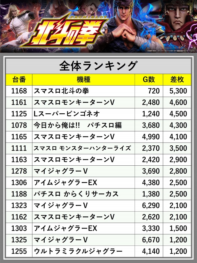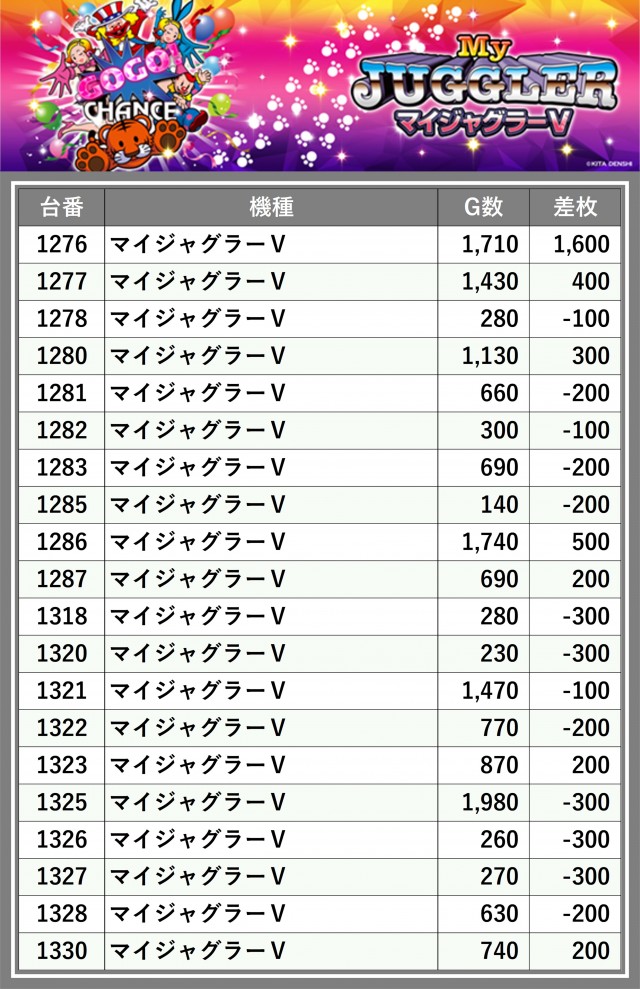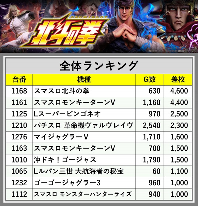 厳選された取材対象機種をはじめ、その他スロット全体から好記録が飛び出した!プレイヤーが楽しんだ1日を下記データにて振り返ってみて欲しい。