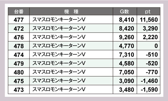 さらに『スマスロモンキーターンV』は477番台が+11,560ptで堂々のランキング1位を獲得。