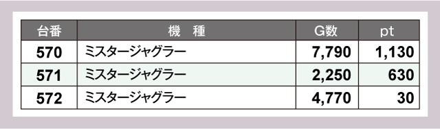 さらに『スマスロ モンスターハンターライズ』や『ミスタージャグラー』、『スマスロ ゴッドイーター リザレクション』も各機種から好調台が誕生していて、どこにでもチャンスが落ちていることがうかがえた。