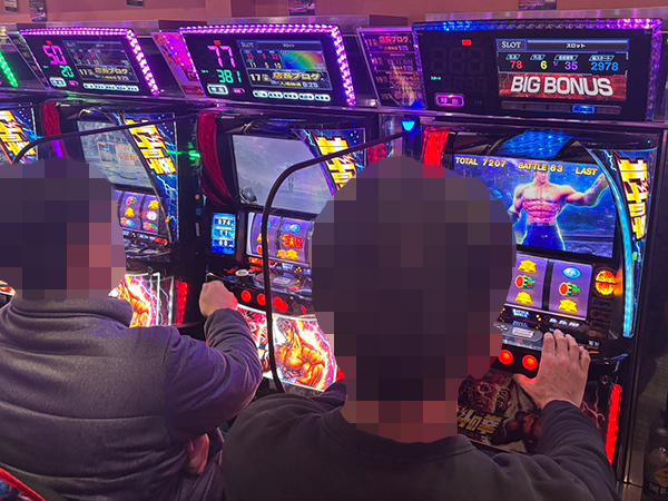 1000円/46枚パチスロに目を向けると、「スマスロ ゴッドイーター リザレクション」や「スマスロモンキーターンV」、「スマスロ北斗の拳」で華麗なパフォーマンスを披露するプレイヤーが複数見られ、シマ内からは活気が感じられた。