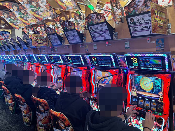 取材時は貸し玉料金を問わずプレイヤーでにぎわっており、各シマとも明るい雰囲気に包まれていた。
