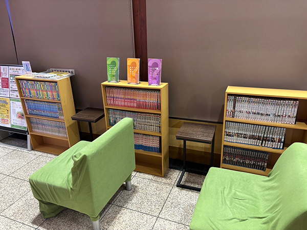 レストスペースにはたくさんの漫画本が用意されており、プレイヤーからの評価も高いように感じられた。