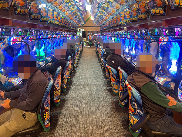 店内には多くのプレイヤーが来店。貸し玉料金を問わず、随所で盛り上がりを見せていた。