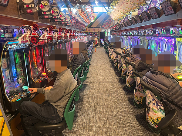 14時半ごろの4円パチンコでは「e大海物語5スペシャル」や「e ソードアート・オンライン 閃光の軌跡」、「e Re:ゼロから始める異世界生活 season2」が盛況で、機種のポテンシャルをフルに活かすプレイヤーを複数確認している。