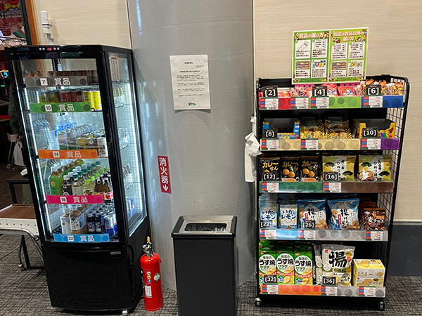 景品コーナーには、お菓子やドリンク類など様々なアイテムが用意されていた。