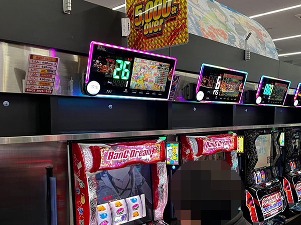 1000円/46枚パチスロをチェックすると「Lバンドリ!」や「スマスロ モンスターハンターライズ」で好調なプレイヤーを確認。納得の表情がそこかしこで見られた。