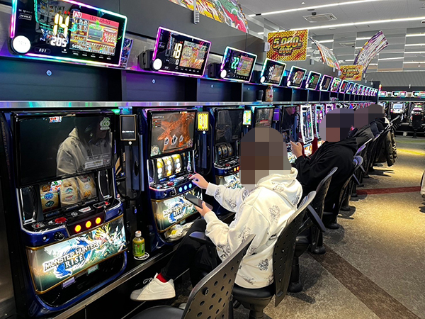 「キングハナハナ-30」や「ドラゴンハナハナ~閃光~ 30」、「沖ドキ!BLACK」では機種のポテンシャルをフルに活かすプレイヤーが見られ、実に華やかな光景が広がっていた。