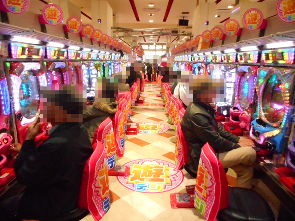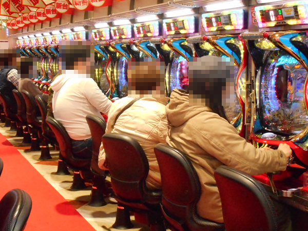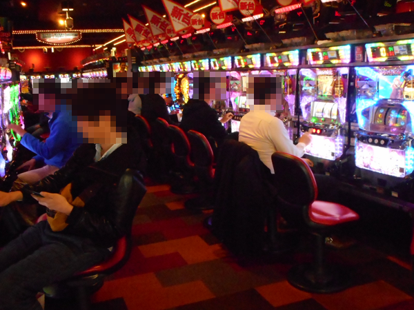 開店すると、4円パチンコの新台「CRぱちんこウルトラバトル烈伝 戦えゼロ!若き最強戦士」が大盛況に。遊技をしているプレイヤーを見ると入場整理券を持つ人が多く、いかに高い注目を集めていたのかが分かる。