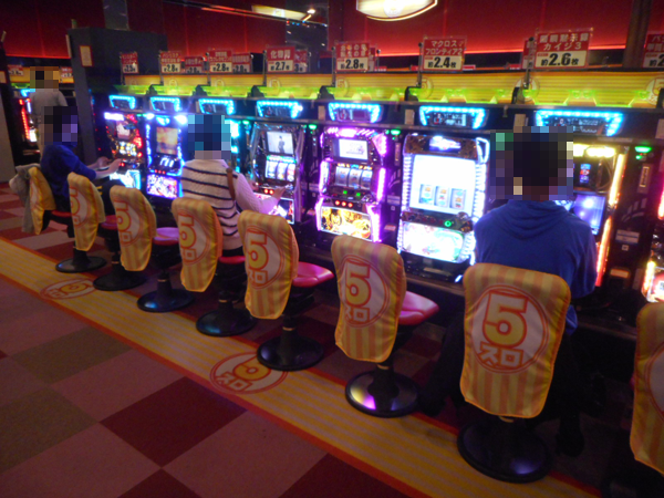 店内は2階がパチスロコーナーで1階がパチンココーナーという構成となっており、貸し玉料金はパチスロが20円(1000円/47枚)と5円、パチンコが4円と1円のそれぞれ2種類ずつだ。