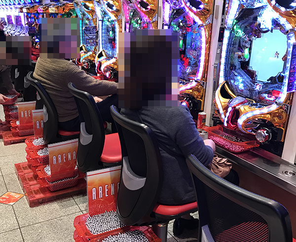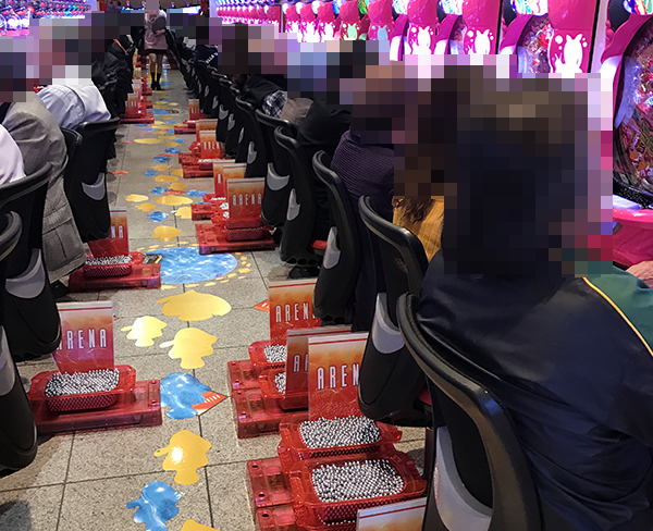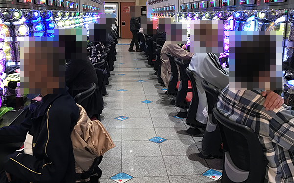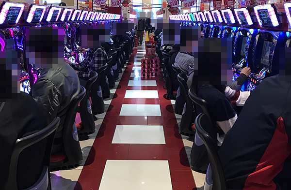 15時頃の4円パチンコでは、海物語シリーズが大盛況。