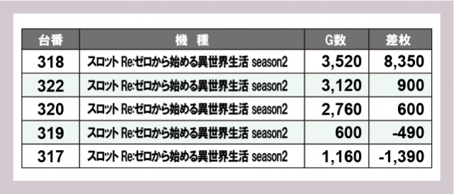 ※差枚数順に掲載しています