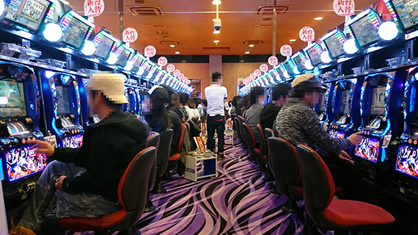 1000円/240玉パチンコで、最も盛り上がりを見せていたのは「ぱちんこCR真・北斗無双」で、シマ全体からあふれる活気は店内の中でもピカイチであった。