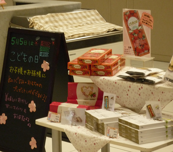 こどもの日にむけて、おもちゃやお菓子が用意されている賞品コーナーもみどころのひとつだ。