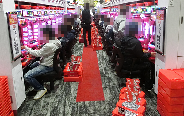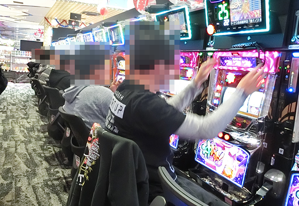 パチスロでは、新台の「押忍!番長3」と沖スロコーナーが盛況。活躍をみせるプレイヤーによってシマ内に広がる光景は、鮮やかなものとなっていた。