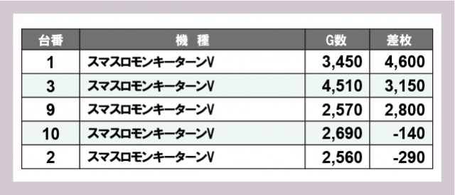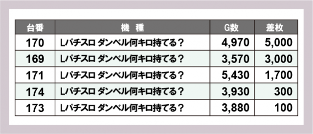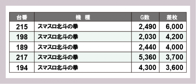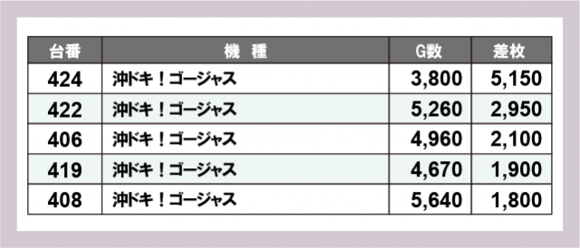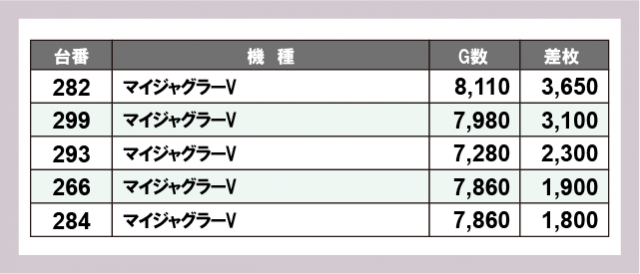 ※差枚数順に掲載しています