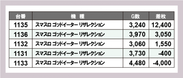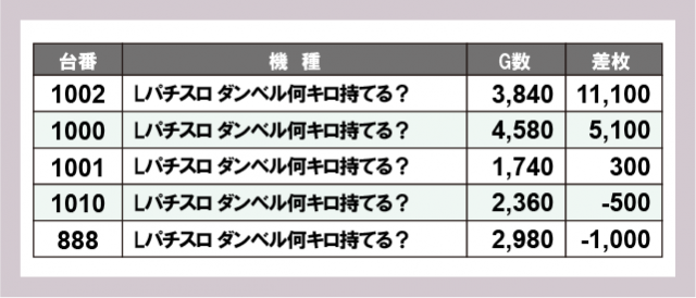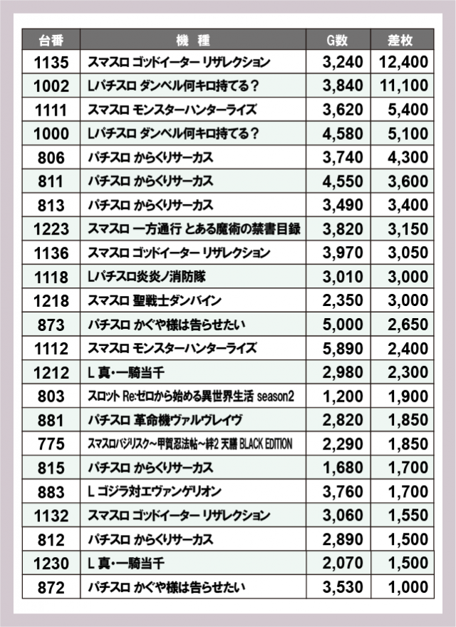 ※差枚数順に掲載しています