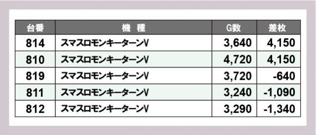 ※差枚数順に掲載しています