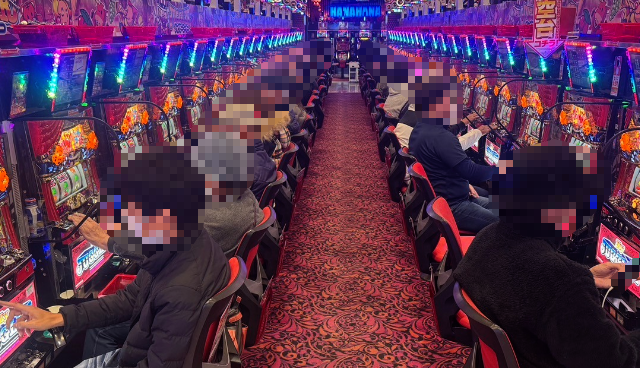 『パチスロ からくりサーカス』から+8,000枚OVER、『スマスロ北斗の拳』から+5,000枚OVERが飛び出し活気と熱気に包まれていた。『沖ドキ!ゴージャス-30』でもコンスタントにハイビスカスが光り輝き、ファンは恍惚の表情を浮かべていたのが鮮烈だった。