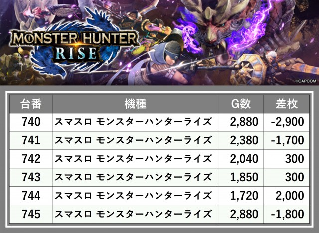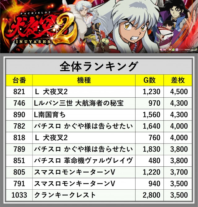 厳選された取材対象機種をはじめ、その他スロット全体から好記録が飛び出した!プレイヤーが楽しんだ1日を下記データにて振り返ってみて欲しい。