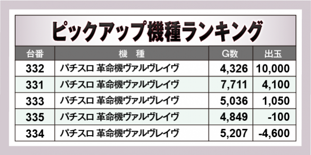 ※出玉数順に掲載しています