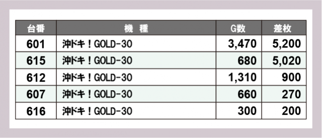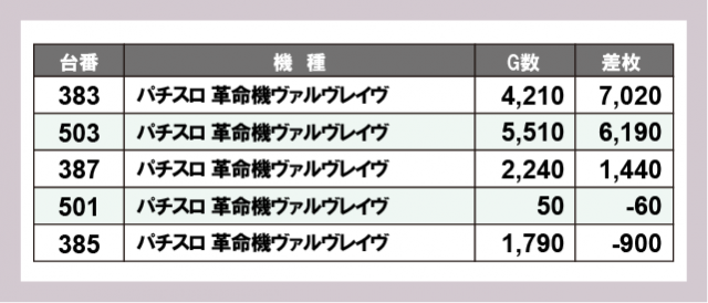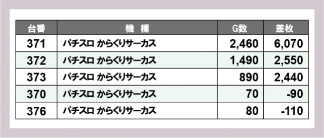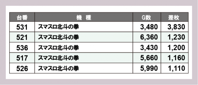※差枚数順に掲載しています