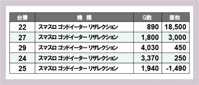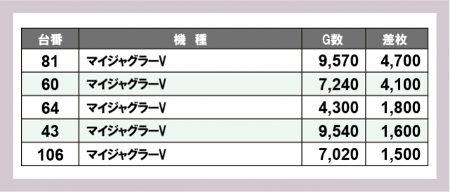 ※差枚数順に掲載しています