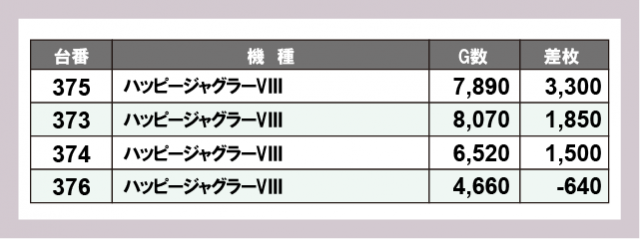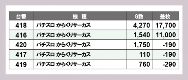 ※差枚数順に掲載しています