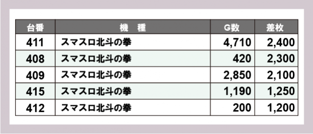 ※差枚数順に掲載しています