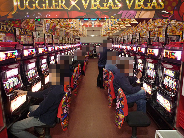 15時をまわった頃の20円パチスロをみると、「バジリスク~甲賀忍法帖~絆」とジャグラーシリーズを中心に盛り上がっていた。