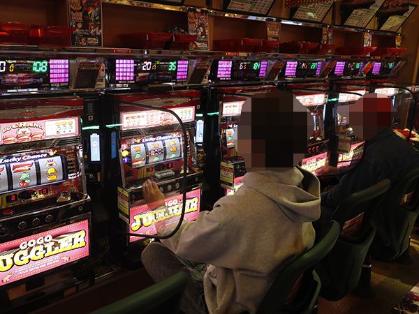 1000円/46枚パチスロに目を向けると、「マイジャグラーⅤ」や「ゴーゴージャグラー3」で華麗なパフォーマンスを披露するプレイヤーが複数見られ、シマ内からは活気が感じられた。