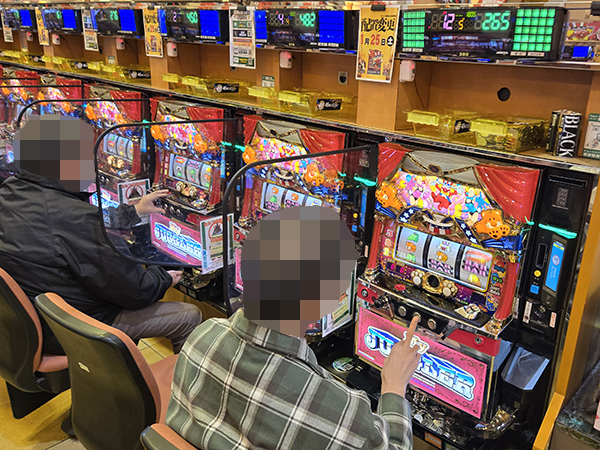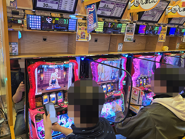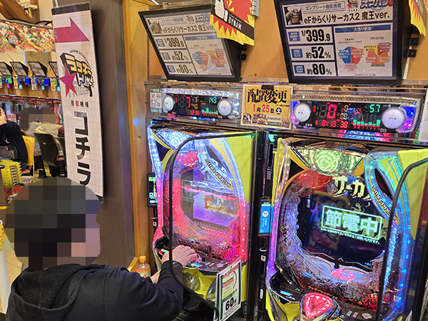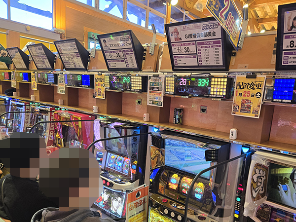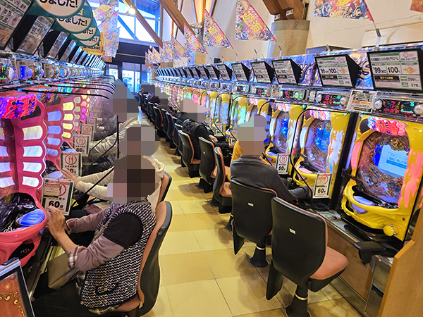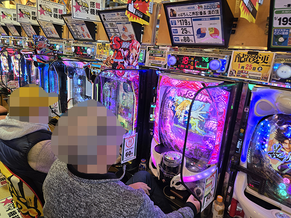 14時ごろの4円パチンコでは、「eぱちんこ押忍!番長 漢の頂」や「e ソードアート・オンライン 閃光の軌跡」、「eフィーバーからくりサーカス2 魔王ver.」が好評で、プレイヤーの嬉しそうな表情を多数確認している。