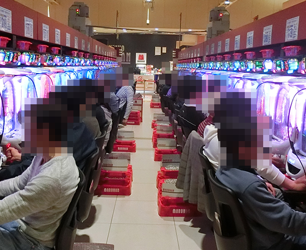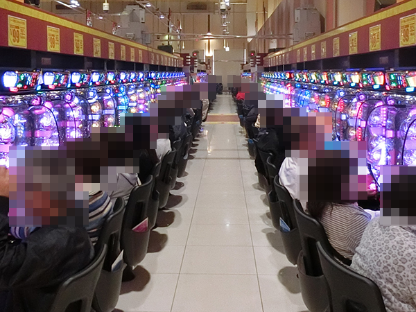 1円パチンコの支持も厚く、空き台がほとんどみあたらないといった状況。