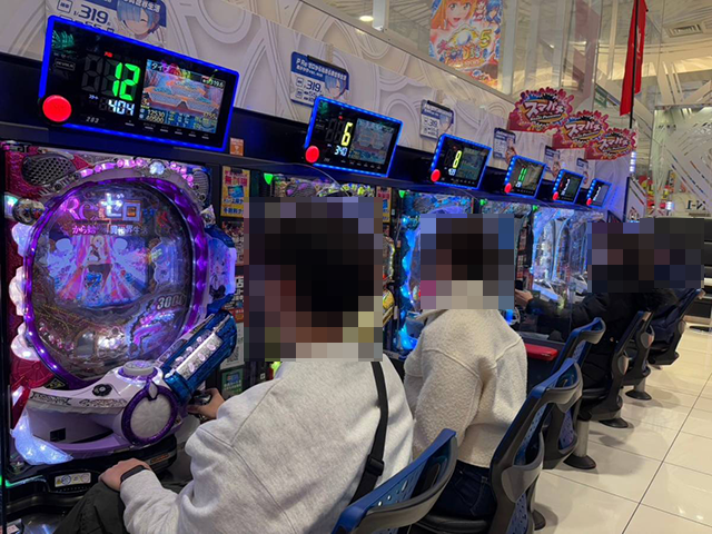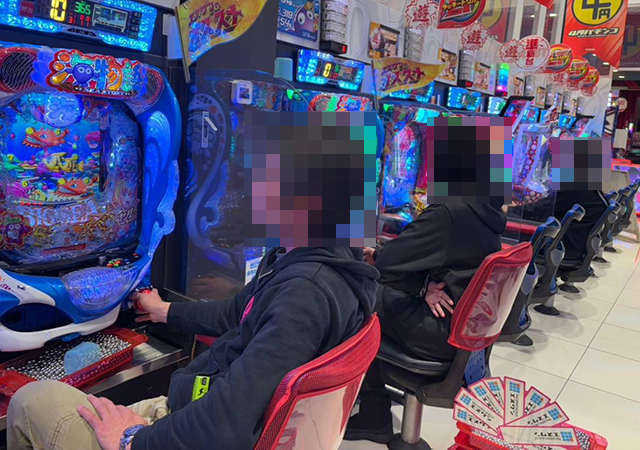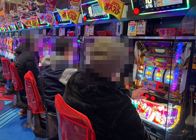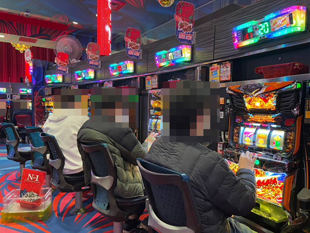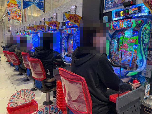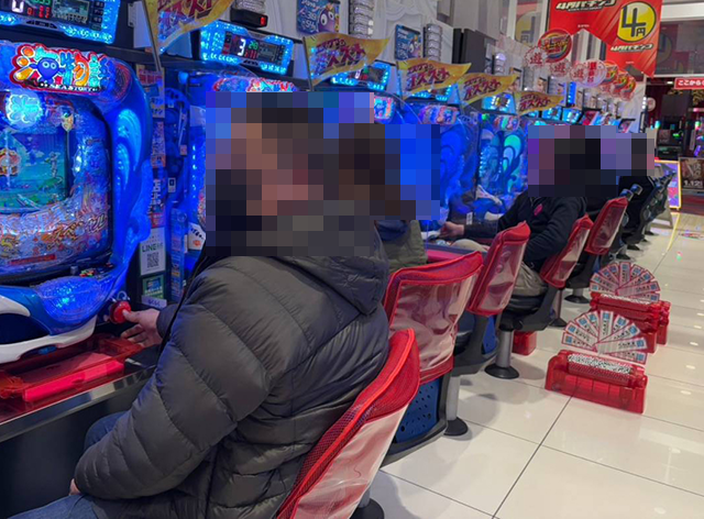夕方頃に店内をみてみると、パチンコとパチスロの両方に、楽しそうな景色が広がっていた。