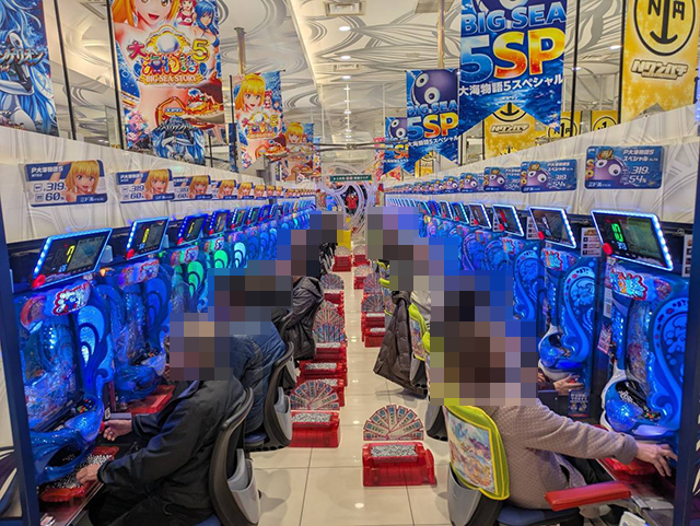 「P大海物語5」と「P大海物語5スペシャル」にて、多くのプレイヤーが持ち玉を使って遊技をおこなっていた。