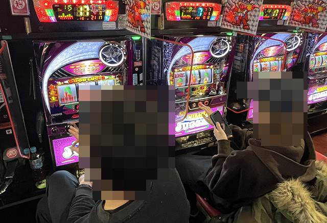 どちらも持ち玉で遊技をおこなっており、目立っていた。