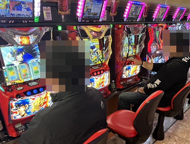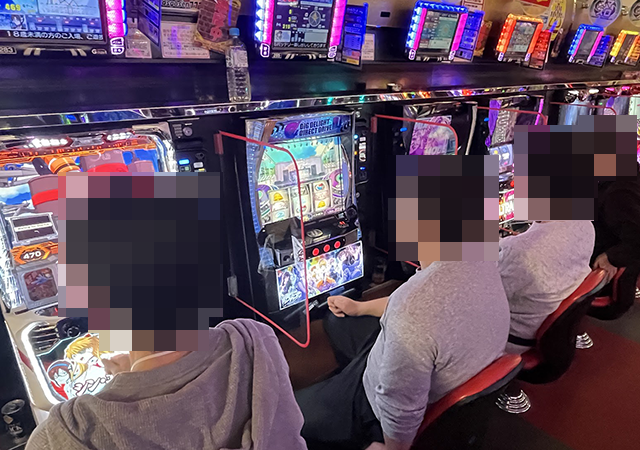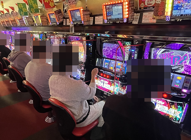 取材時の「A-SLOT+ ディスクアップ ULTRAREMIX」に空き台はなく、楽しげなプレイヤーが多かった。