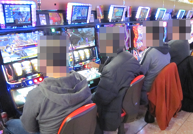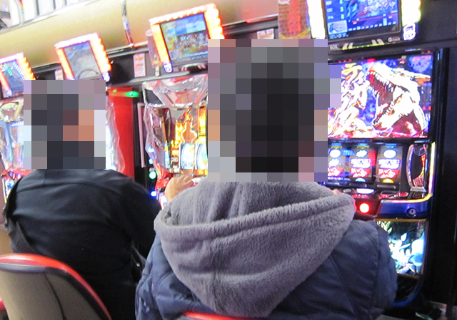 「パチスロ からくりサーカス」と「L ゴジラ対エヴァンゲリオン」でも、楽しげなプレイヤーを確認。
