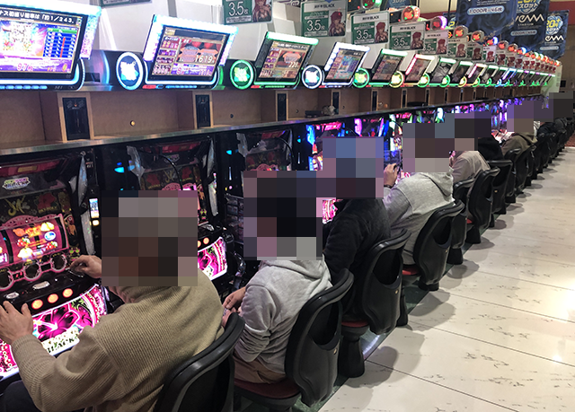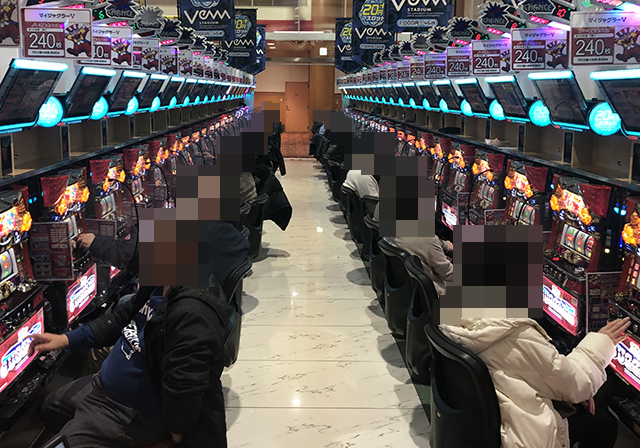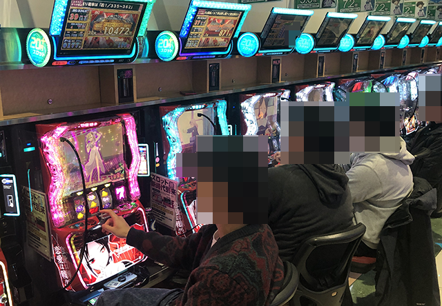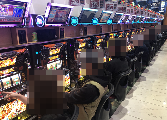 『スマスロモンキーターンV』や『スマスロ モンスターハンターライズ』にも持ち玉で遊技をおこなう姿があり、活気に満ちていた。