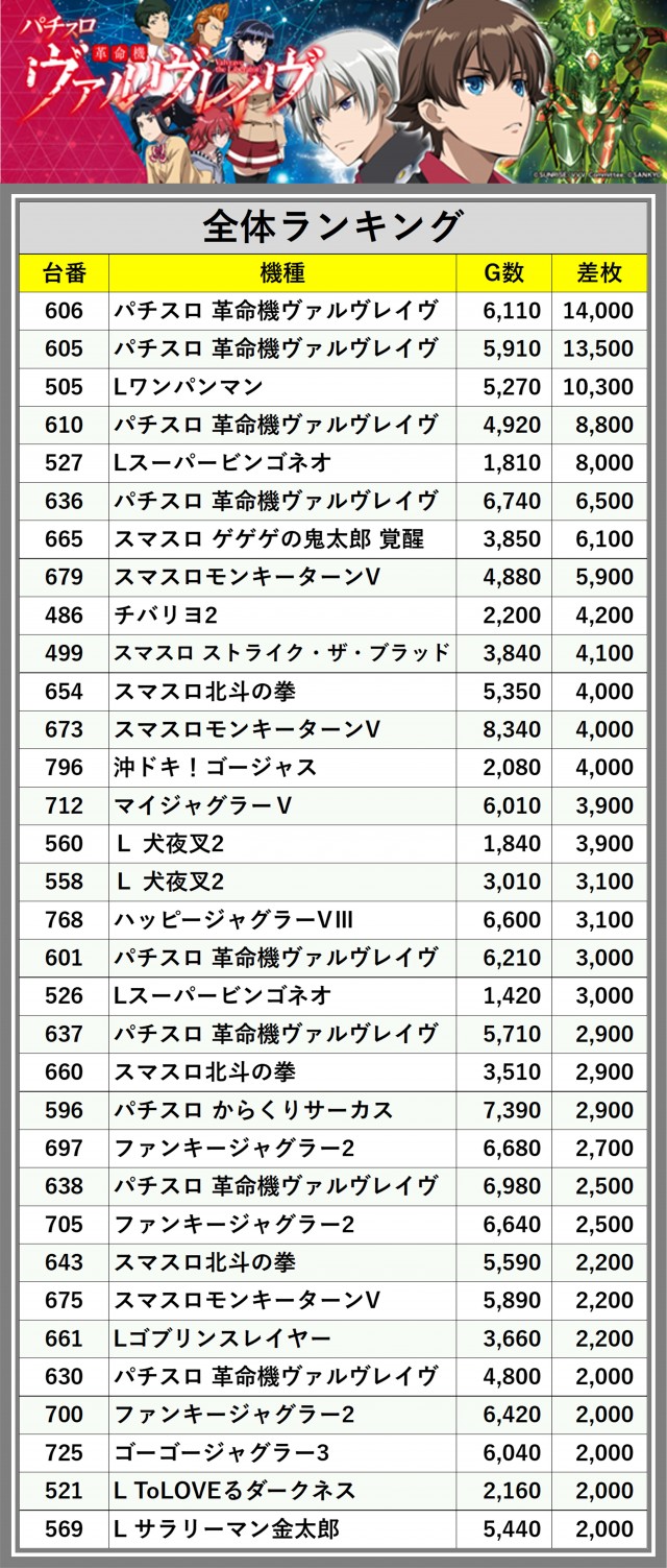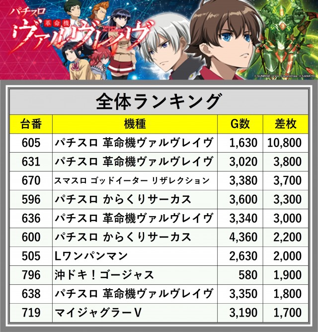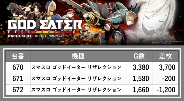 厳選された取材対象機種をはじめ、その他スロット全体から好記録が飛び出した!プレイヤーが楽しんだ1日を下記データにて振り返ってみて欲しい。