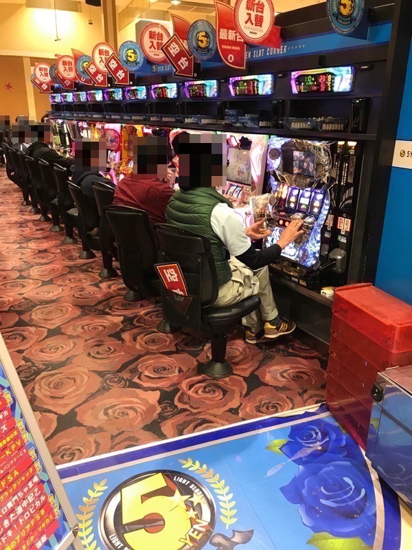 5円パチスロにおいても、いたるところから華やかな光景を目撃している。どのプレイヤーもお目当ての台をじっくり堪能している姿が印象的であった。