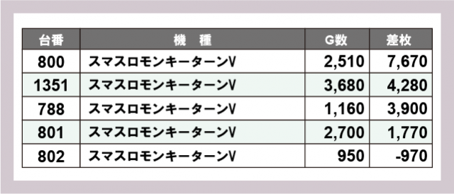 ※差枚数順に掲載しています