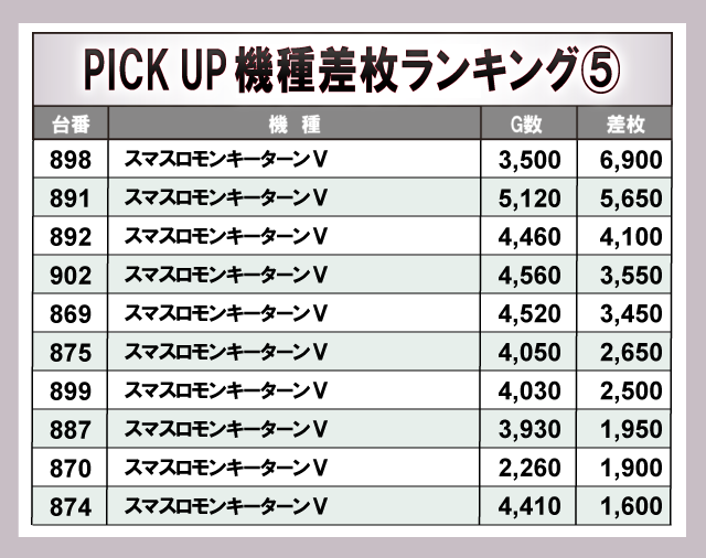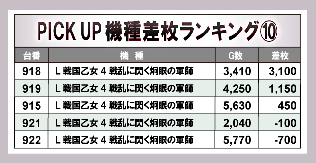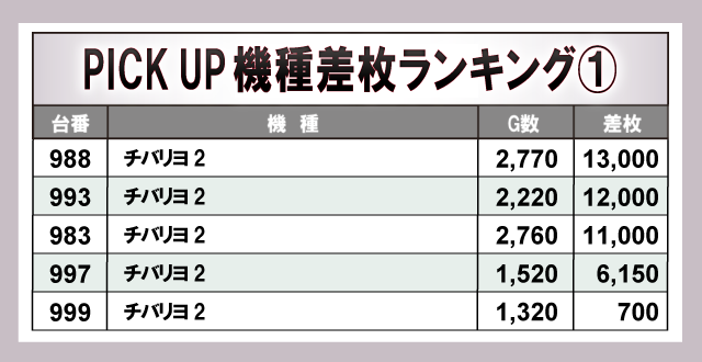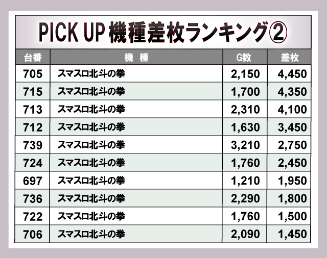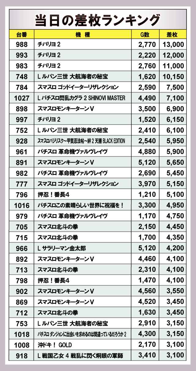 ※差枚数順に掲載しています。