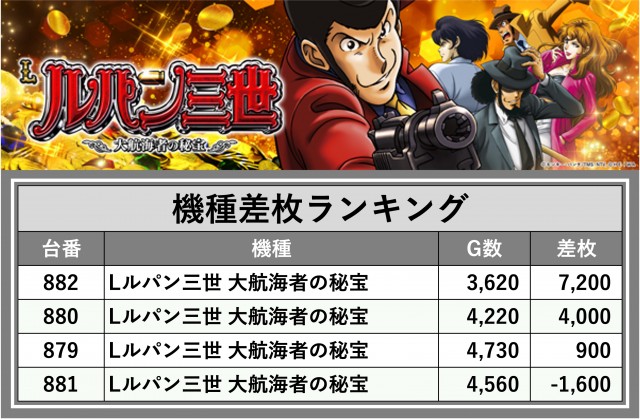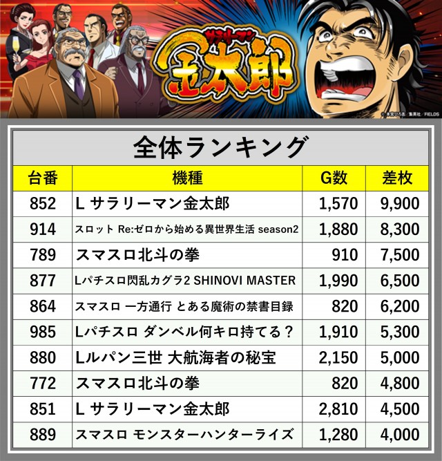 厳選された取材対象機種をはじめ、その他スロット全体から好記録が飛び出した!プレイヤーが楽しんだ1日を下記データにて振り返ってみて欲しい。