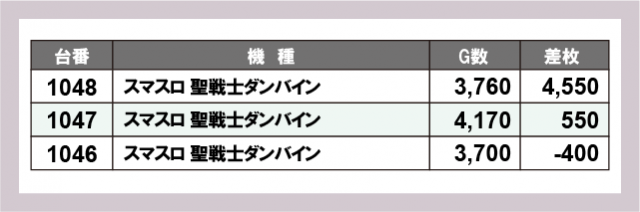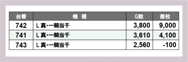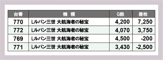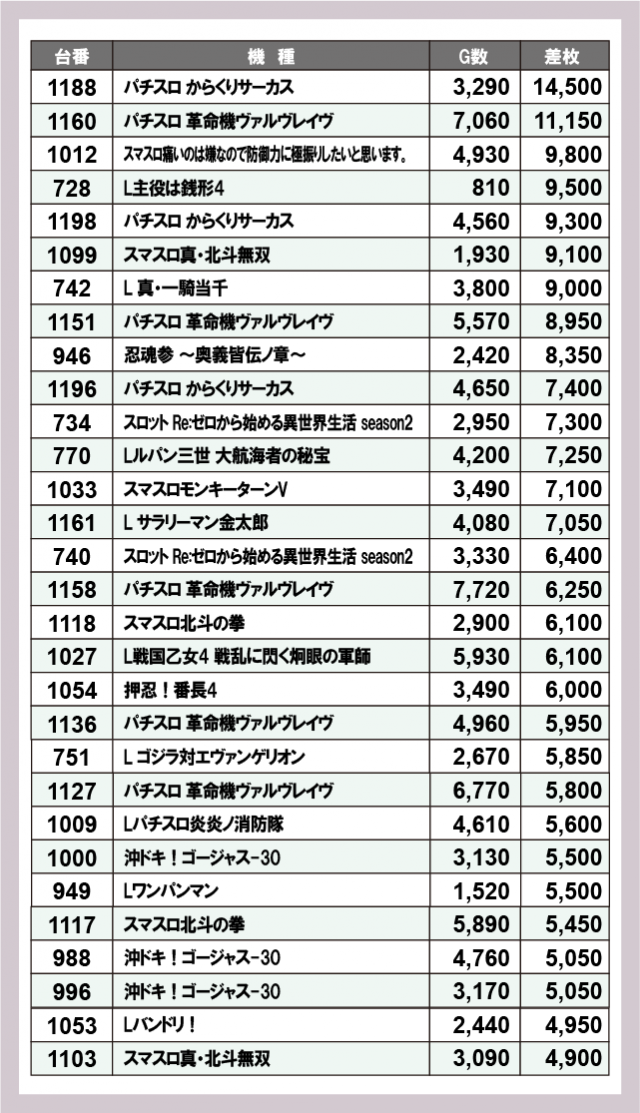 ※差枚数順に掲載しています