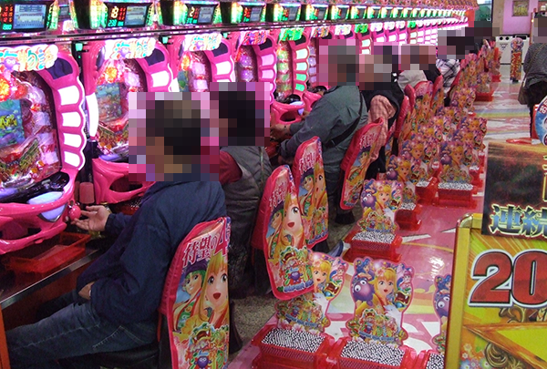 1円パチンコの支持も厚く、笑みを浮かべているプレイヤーが多い。