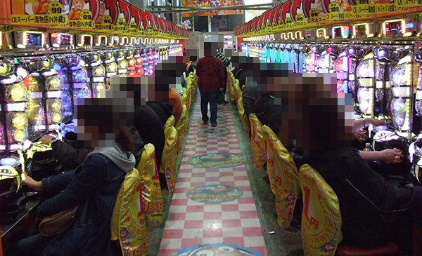 この日も大勢のプレイヤーが訪れており、パチンコ・パチスロともに活気づいていた。